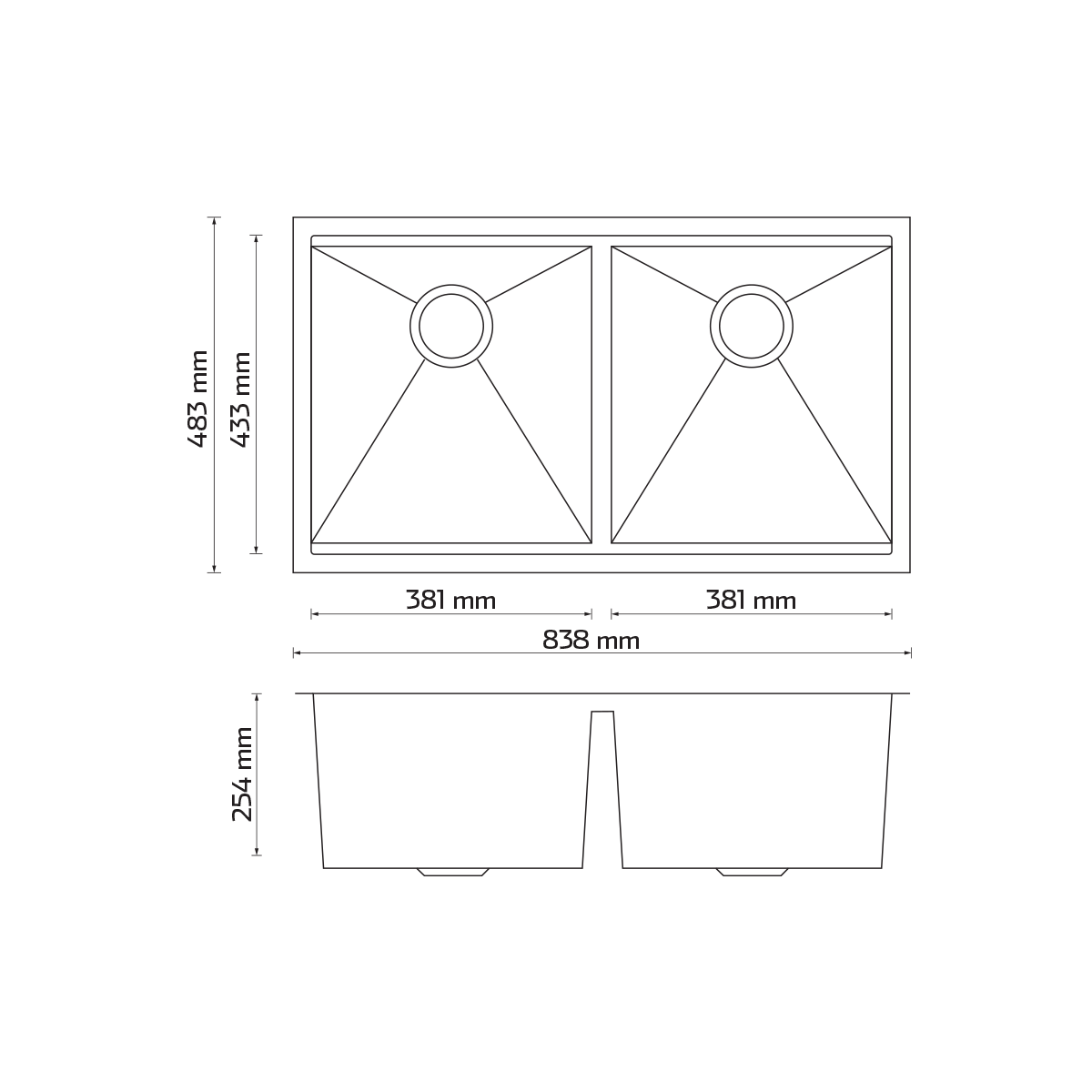 Fabricada en acero inoxidable 304 de calibre 16, esta tarja de alta calidad ofrece una profundidad de 254 mm y un contorno de 838 x 483 mm, proporcionando un amplio espacio para lavar grandes utensilios y ollas con total comodidad. Su diseño cuadra le da un toque moderno y sofisticado, ideal para cocinas contemporáneas.